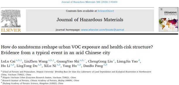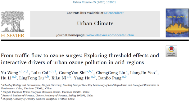 近日,生态环境学院施光耀副教授围绕干旱区城市大气环境污染形成机制、健康风险及协同治理等前沿问题,2026年1-3月连续在国际高水平期刊《Urban Climate》《Journal of Hazardous Materials》和《Transportation Research Part D》发表3篇学术论文。系列研究依托宁夏银川城市生态系统定位站,立足宁夏银川典型干旱区城市生态环境特征,聚焦交通活动、沙尘天气与城市大气复合污染之间的耦合关系,系统揭示了臭氧(O₃)、细颗粒物(PM2.5)和挥发性有机物(VOCs)在干旱环境中的关键驱动机制,为干旱区城市空气污染精准防控和健康风险管理提供了重要科学支撑。